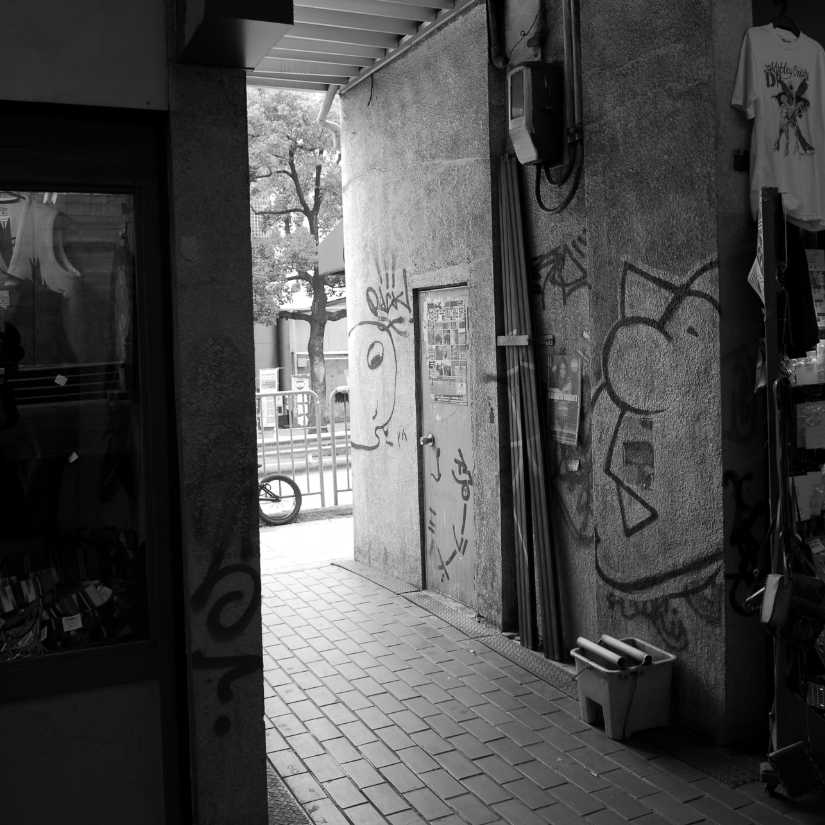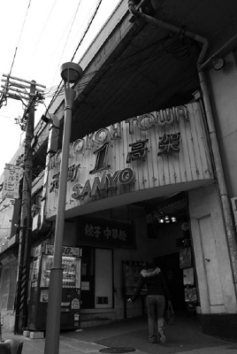 貨物列車が通ると、ガタンゴトンと地ひびきのする、薄暗い商店街です。